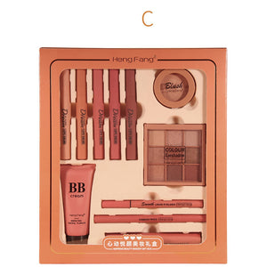 Specification: Product name: Heart-warming beauty gift box Specifications: 11 pieces set, -4 inner boxes x 12 boxes Net content: 1.7gx5+4.2g+1.5gx9+o.8g+0.16g+ 10g+40g Packing list: