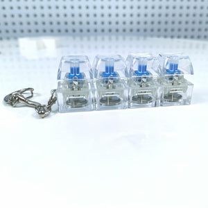 4Keys Mechanical Keyboard Electronic Luminous Transparent Crystal Height Pressure Reduction Finger Button Anti Stress Keycap Toy Schoolbag Pendant Keychain Decompression Clicker Gadget Gift